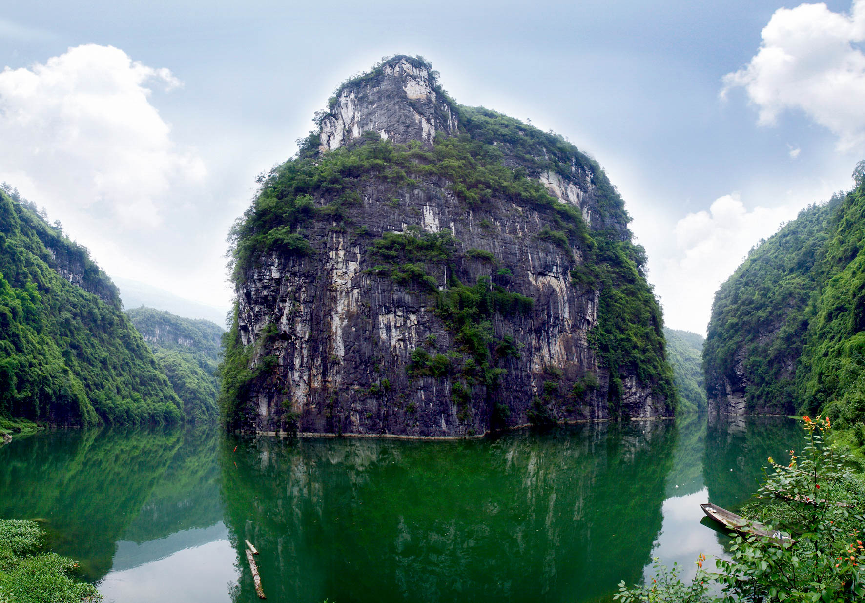 阿蓬江官渡峽位于重慶市黔江區馮家鎮,距黔江城區18公里,因古驛道從這里船渡過江而得名,峽谷全長15公里。官渡峽沿峽兩岸懸崖峭壁,江水蔚藍清澈,清幽雅致,景致迷人。