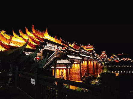 黔江濯水古鎮(zhèn)風雨橋橫跨于阿蓬江 上,長658米、寬5米,據(jù)說是世界最長的風雨廊橋。