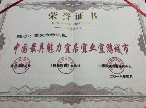 2018年4月21日,在“2018 美麗中國——生態城市與美麗鄉村經驗交流會”上,黔江區憑借得天獨厚的生態、人文、環境資源和絢麗多姿的民俗風情等優勢,從眾多城市中脫穎而出,獲評“中國最具魅力宜居宜業宜游城市”殊榮。