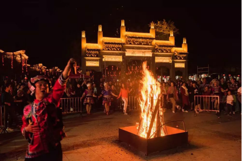 在黔江的濯水古鎮(zhèn),每逢晴朗的夜里,古鎮(zhèn)都會(huì)舉辦熱鬧的篝火晚會(huì),當(dāng)?shù)鼐用窈桶朔絹砜停苄苋紵捏艋穑饠[手舞,歡聲笑語化做一堂。