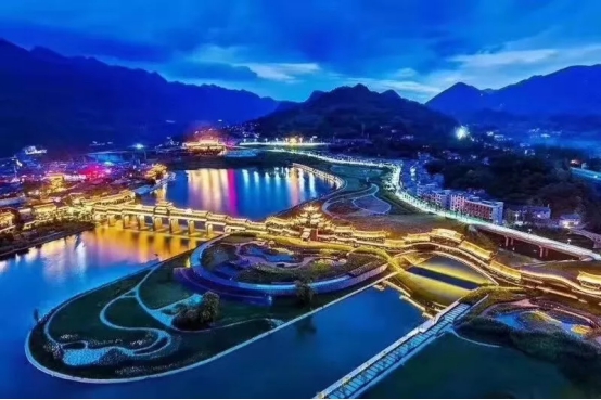 篝火晚會后,夜游風雨廊橋,在廊橋的另一頭可以看到其全景,走進廊橋后,頗有“只緣身在此山中”的悵然,但站在橋上看濯水河又是另一番景象,河風給燥熱的空氣增添了一絲涼爽。