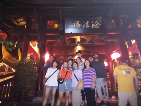學子們在14日18點40分到達黔江濯水古鎮,夜幕降臨時的濯水古鎮神秘又磅礴,首先映入眼簾的便是世界第一風雨廊橋——濯水滄浪橋,彼時的滄浪橋燈光遍布,宛若身披金甲的長龍。