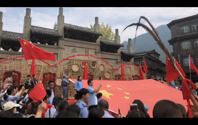 金秋十月,舉國同慶,萬眾歡騰,濯水景區處處洋溢著歡樂祥和的節日氣氛。10月1日上午,為慶祝新中國成立70周年,在古鎮牌坊大舞臺前舉行了升旗儀式,來自世界各地的游客懷著激動的心情,手持小國旗肅立在牌坊前,期待著莊嚴時刻的到來,共同祝福偉大的祖國生日快樂!