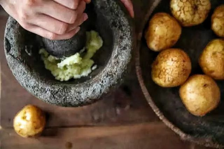 洋芋不只可以煎炸、爆炒、涼拌,還可以碾泥熬湯。將洋芋煮熟后碾碎成泥,再加入高山特有清新香甜的青菜,清新沁人的湯品便出爐了。