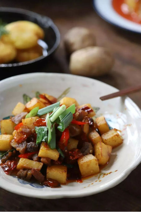 對于土家族人來說,吃土豆的法子可太多啦,炸、炒、煮、蒸、炕、燒皆是美味。有時早餐便更干脆,直接把洋芋洗凈清水煮熟,剝了皮便吃,這就是土家人常說的毛洋芋。