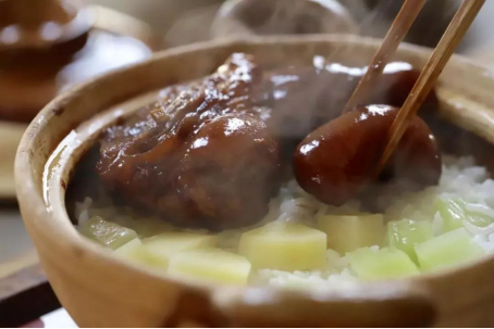 最后不得不提的是土家人人所好的主食——箜洋芋飯。柴火箜出來的臘肉洋芋飯,色澤金黃,外焦里嫩,又酥又燙,洋芋、臘肉丁、米粒,一口下去,是不同層次的噴香口感。
