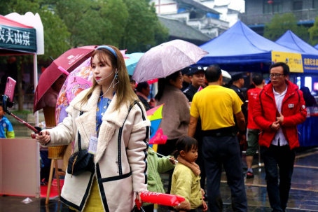 《美女主播》11月24日上午,在山馬賽正陽(yáng)終點(diǎn)站,一美女主播現(xiàn)場(chǎng)拍攝解說(shuō) 李詩(shī)素
