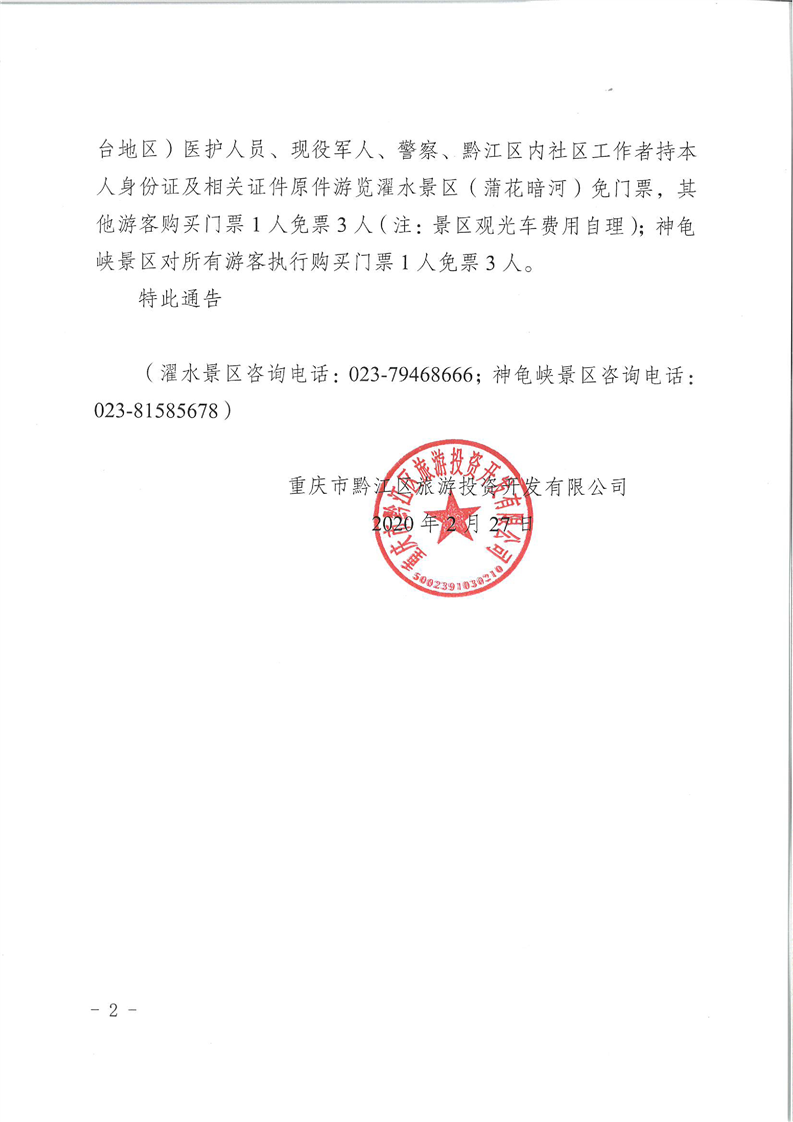 關于濯水景區、神龜峽景區恢復對外開放的通告