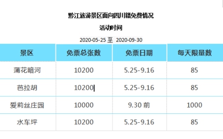 好消息來咯!5月25日—9月30日期間,黔江芭拉胡景區、蒲花暗河景區、愛莉絲莊園景區、水車坪景區對四川籍游客免費贈送門票,趕緊來看看!