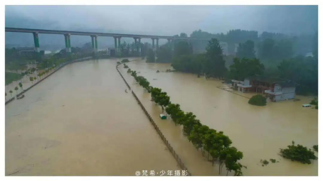 6月28日拍攝的蒲花觀光園,洪水漫灌。(王江龍 攝)