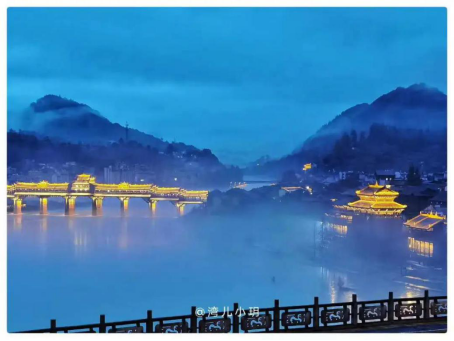 華燈初上的古鎮(zhèn)披著迷霧出場(chǎng),風(fēng)回云斷雨初歇,返照江邊暖復(fù)明,這一刻的美景如夢(mèng)亦如幻,美的好像人間不真實(shí)!