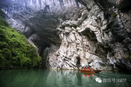 天下溶洞甚多,且多是千篇一律的自然景觀。但聽說黔江濯水古鎮發現了一處赤穴,里面有巴族先祖廩君與鹽水女神的人文故事,我不禁來了興趣,執意要去尋幽探微。此處溶洞不久前才被鄉人發現,景點布置尚在草創階段。我們循著山巖間蝙蝠的蹤跡,找到了崖畔上的洞口。