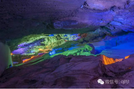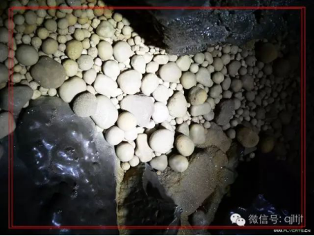 另一處名曰“穴珠”,由細小的燧石粘合沙土形成一片白晃晃的顆粒,這不就是女神部落經營的鹽田么?望著這些洞中風光,彩燈閃灼,泉水叮咚,恍惚間,我分明看見曾經的上古時代的鹽陽之地,那位美麗聰穎的女酋長,正帶領著部落中的少男少女們,在月下踏歌而舞,于泉邊縱情對歌。