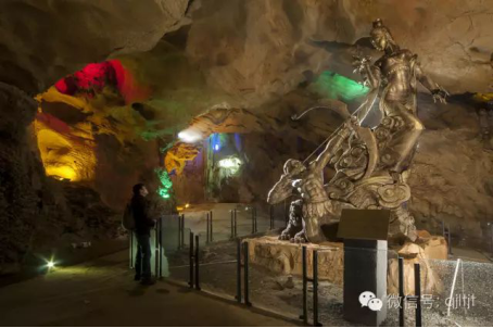 但固有文獻的記載卻使廩君和鹽水女神的后裔們很不順心遂意,范曄所撰的《后漢書·南蠻西南夷列傳》云:“鹽水有神女謂廩君曰:‘此地廣大,魚鹽所出,愿留共居。’廩君不許,鹽神暮輒來取宿,旦即化飛蟲,與諸蟲群飛。掩蔽日光,天地晦冥,積十余日,廩君不知東西所向七日七夜,使人操青絲以遺鹽神曰:“纓此即相宜,云與女俱生,宜將去。’鹽神受而纓之,廩君即立陽石上,應青纓而射之,中鹽神,鹽神死,天乃大開。廩君于是君乎夷城。”更早一些的西漢時代劉向所撰《世本·氏姓篇》所記,也是如此。是的,洞內巖壁上有那么多密集如云的石花,難道這就是當年鹽水女神布下的飛蟲陣的遺跡么?據學者考證,廩君與鹽水女神生活的年代,是與遠古治水的大禹同時或稍晚一些時候,即使再晚,也應在夏商時期。試想,那時的史實無文字記載,全憑原始部落口耳相傳,正如長江三峽中的神女一樣,歷來有兩個版本,宋玉的《高唐賦》說她是楚襄王的情人,而三峽民間的版本,卻說她是瑤池下凡的瑤姬仙子,來人間助大禹王疏通洪水,時至今日仍在為峽中船夫導航。同樣的,廩君與鹽水女神的結局,也有兩個版本,除了范曄和劉向的文人版,還有巴族后裔們的民間版。在當年的夷水上下,祭祖的廩君廟有數十座之多,在這些祖廟中,廩君像側,皆塑有一尊名曰“德濟娘娘”的金身。德濟娘娘即鹽水女神,言其德澤惠及后人,后裔們認她為老祖婆,讓她同老祖公并坐一處,配享巴族子孫的人間煙火。此說有由來嗎?有。應該感謝濯水鎮的民間傳說整理者和景區設計者們,他們在描述了上古史話之后,又緊扣百姓的心理,對上古那場絕世愛情的哀怨與凄美,重現了流傳千載的民間版本的故事細節,塑像下的碑文曰:“……廩君贈青絲予鹽神,表示永結合好。鹽神欣然受諾,便將青絲系身,廩君拉弓射向青絲,鹽神傷懼,化蝶離去。天地豁然開朗,后廩君沿夷水而下夷城建都。逝后化天神駕白虎,尋女神于赤穴重逢,終釋前嫌,結為伉儷。”