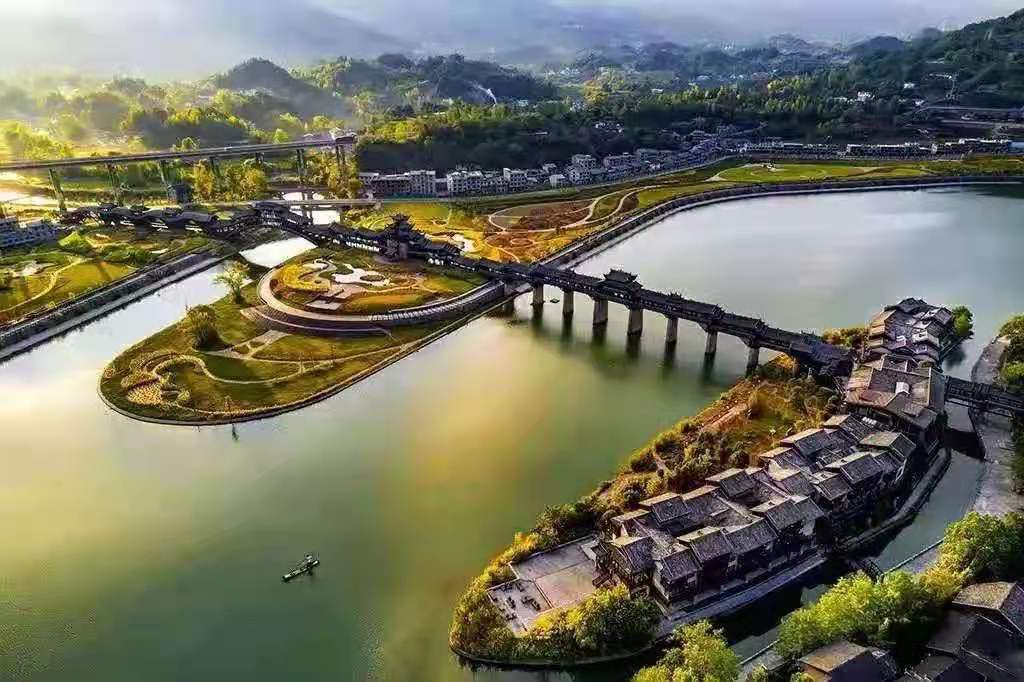 ▲鳥瞰濯水風(fēng)雨廊橋