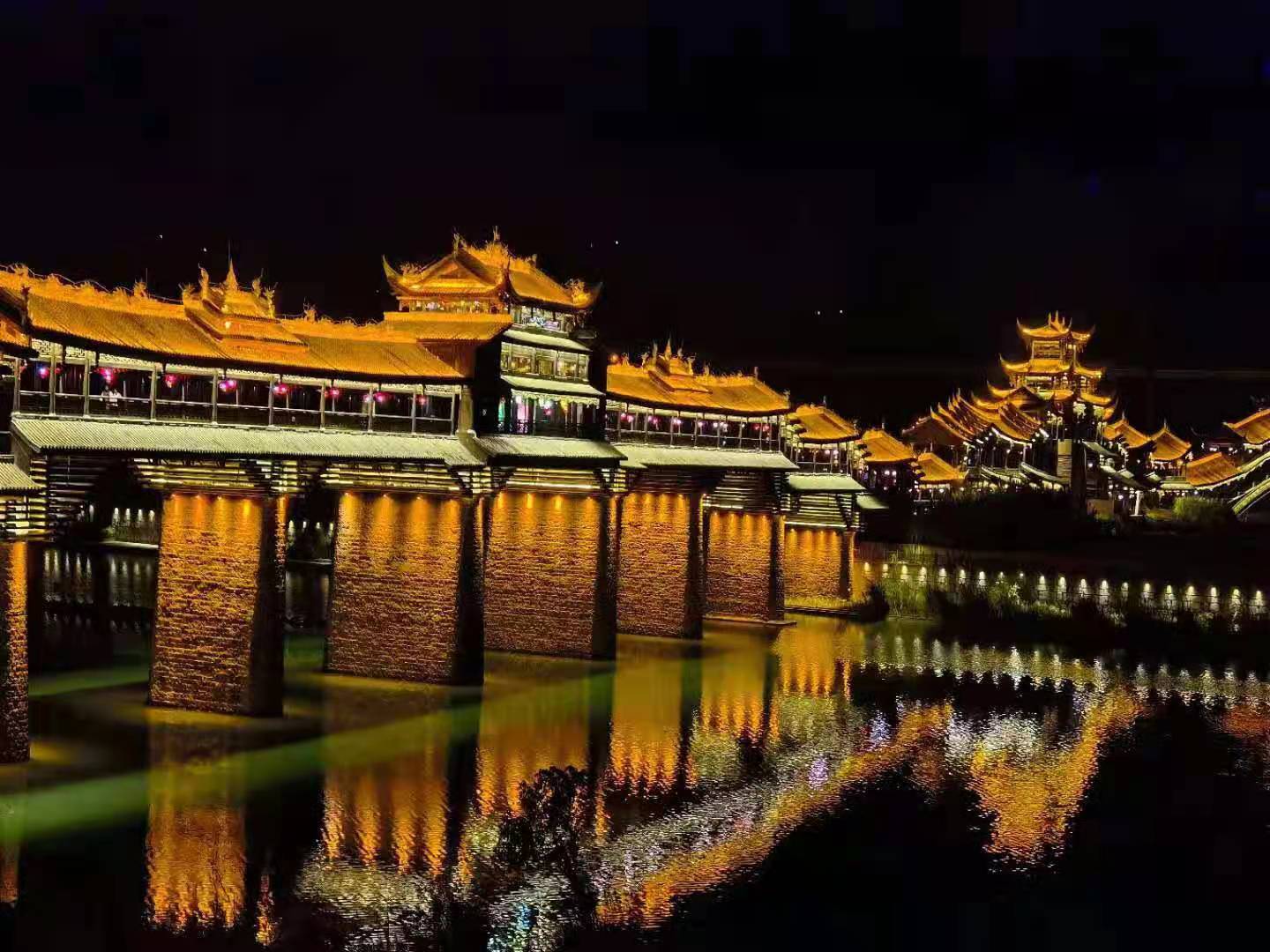 ▲夜幕下的濯水風(fēng)雨廊橋