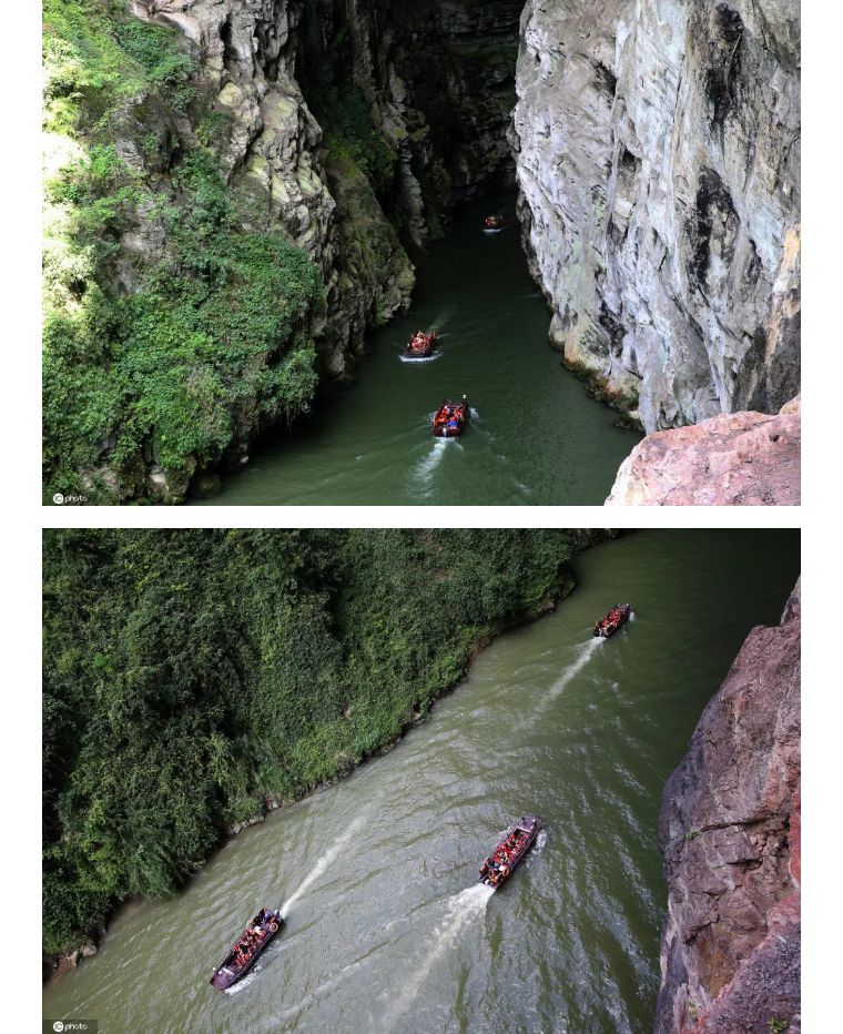 黔江區(qū)濯水景區(qū)蒲花暗河,長約2公里,氣溫全年保持恒溫22℃,成為人們避暑納涼的好去處。
