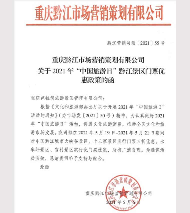 黔江旅游推出了多條景區優惠政策