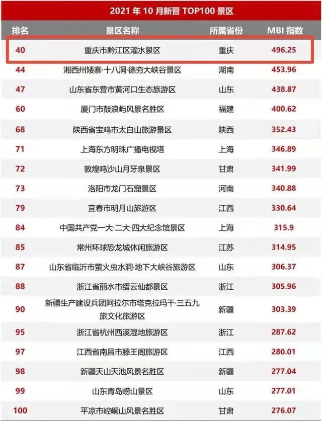 全國排名40!濯水景區上榜MBI100強