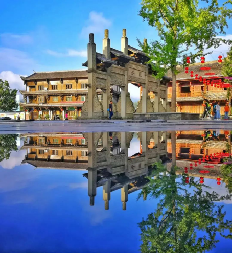 古鎮(zhèn)老街上的青石板帶著歲月的印記,白虎廣場前的那幾顆樹最早接受到秋意,葉子變黃昭示著秋日的到來。