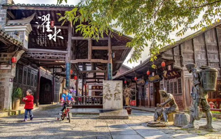 踏入濯水,就已經(jīng)進入了水墨江山的畫卷里。初秋日頭里,抬頭是小鎮(zhèn)秋高氣爽的天,低頭,是小鎮(zhèn)傳統(tǒng)古建筑,放眼四望,皆是風景。
