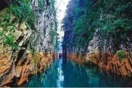 位于重慶市黔江區(qū)馮家鎮(zhèn),距黔江城區(qū)18公里。因古驛道從此船渡過(guò)江而得名,峽谷全長(zhǎng)15公里。官渡峽沿峽兩岸懸崖峭壁,江水蔚藍(lán)清澈,清幽雅致,景致迷人。峽口石鐘乳奇形怪狀,泉水飛流直下,加上峽中白水泉,神女蜂等景點(diǎn),使官渡峽被譽(yù)為“小盆景”。
