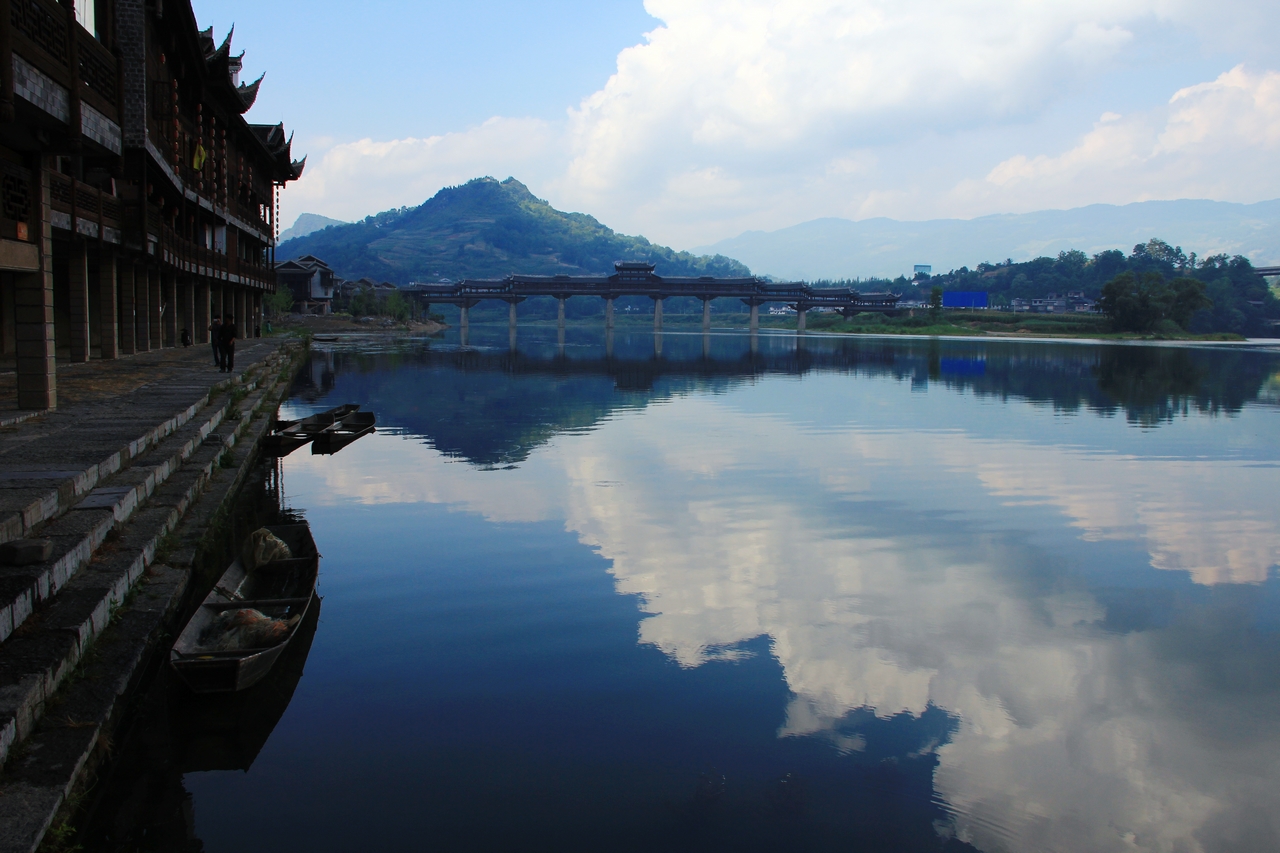 整座濯水風(fēng)雨廊橋,不僅為世界第一長(zhǎng)度的廊橋,在形態(tài)上、結(jié)構(gòu)上、工藝上實(shí)現(xiàn)了傳統(tǒng)與現(xiàn)代的結(jié)合,中式與歐式的結(jié)合,東方建筑美學(xué)與西方建筑美學(xué)的結(jié)合,更是傳統(tǒng)木質(zhì)廊橋與使用膠合木和鋼架相結(jié)合的全新的結(jié)構(gòu)方式,實(shí)現(xiàn)了建筑上新的探索和嘗試。