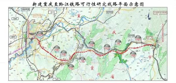 2018年10月30日,國家發(fā)展改革委官網(wǎng)發(fā)布通知公布《國家發(fā)展改革委關(guān)于新建重慶至黔江鐵路可行性研究報告的批復(fù)》,同意建設(shè)重慶至黔江高速鐵路,渝黔段項目線路全長268公里,等級為高速鐵路,設(shè)計速度350公里/小時,全線設(shè)重慶、重慶東、巴南、南川、水江、武隆、彭水、黔江8個車站,項目總投資535億元,預(yù)計2024年建成通車。