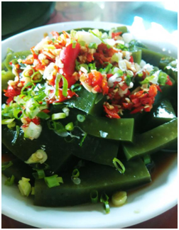 外形四四方方,顏色翠綠非常,口感爽滑Q彈。吃的時候放上辣椒、醬油、醋以及蔥姜末、大蒜水等佐料攪拌一下,然后送入口中,清涼爽滑的感覺定會讓人欲罷不能。